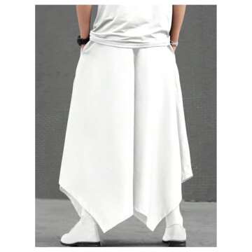 OYOANGLE Men's Skirt Pants Elastic Drawstring Waist Irregular Hem Wide Leg Trousers Loose Harem Pants White X-Large