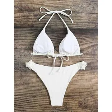 Show moreIntroducing the OYOANGLE Women's 2 Piece Bikini Sets, a perfect blend of style and comfort for your summer adventures. This stunning bikini features a unique tie back design and a halter neckline that accentuates your figure, making you feel confident whether you're lounging poolside or diving into waves. Crafted from high stretch fabric, it's both comfortable and skin-friendly, ensuring you can spend hours in the sun without a worry.