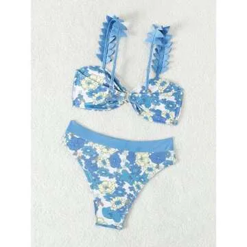 Show more Introducing the beautifully crafted two-piece bikini swimsuit that redefines elegance and function. This exquisite swimsuit features high stretch, lightweight fabric designed to be skin-friendly, ensuring that you stay comfortable while enjoying your day in the sun. The floral print brings a touch of femininity and charm, making it perfect for the laid-back yet stylish individual. Featuring a trendy ruffle strap design and a chic twist front, this bikini not only offers aesthetic appeal but also freedom of movement.