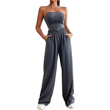 Show moreIntroducing the OYOANGLE Women's 2 Piece Outfits Graphic Tube Top and Drawstring Sweatpants Set in Dark Grey—a must-have for your summer wardrobe! Crafted from a luxuriously soft and skin-friendly fabric, this ensemble combines comfort with style, ensuring you look chic while feeling relaxed even on the hottest days. The standout design features a sleeveless and strapless crop top, paired effortlessly with drawstring sweatpants that highlight your figure with just the right amount of flair.