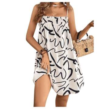 Show moreEmbrace style and comfort with the OYOANGLE Women's All Over Print Spaghetti Straps Frill Trim Dress. Crafted from soft and comfortable fabric, this dress features a unique all-over print that makes it a standout addition to your wardrobe. The frill trim adds a touch of femininity, while the spaghetti straps enhance the overall look, making it perfect for warm weather. With its loose fit and short design, this dress is your go-to for vacations and weekend getaways.