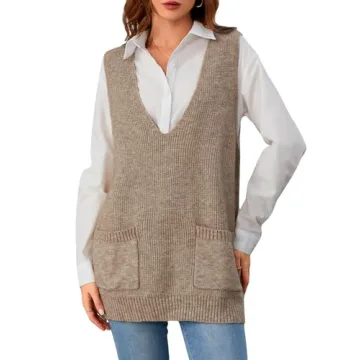 Show moreIntroducing the OYOANGLE Women's Deep V Neck Sweater Vest, the ultimate layering piece for your fall wardrobe! This stylish sleeveless pullover sweater combines elegance and comfort, featuring a chic deep v neck and a functional pocket at the front. Made with a soft knit material that has a slight stretch, this sweater vest exudes sophistication while delivering unmatched comfort. Perfectly versatile, it's designed to complement a wide range of outfits, enhancing your casual or work attire effortlessly.