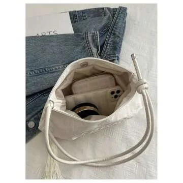 OYOANGLE Women's Floral Embroidered Shoulder Bags Fringe Small Underarm Purse Handbags Elegant Crossbody Bag White One-Size