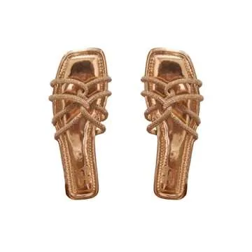 OYOANGLE Women's Glitter Rhinestone Strappy Slides Metallic Square Toe Flat Sandals