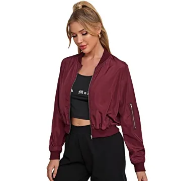 Show more Elevate your style with the OYOANGLE Women's Lightweight Bomber Biker Jacket. This chic maroon jacket is the perfect blend of comfort and fashion, designed to keep you looking stylish without compromising on functionality. Made from lightweight, windproof material, this bomber jacket is ideal for cool summer evenings and transitional weather. The soft lining ensures a comfortable fit against your skin, making it a go-to piece for any casual outing. With its stand collar, ribbed trim, and zip-up front, it embodies all the classic bomber jacket traits while adding a modern twist to your wardrobe.