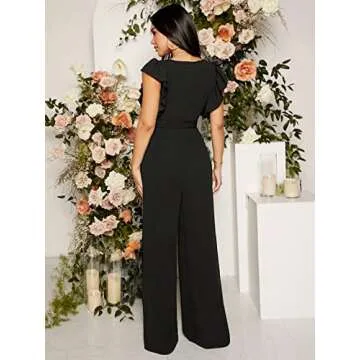 Introducing the OYOANGLE Women's Maternity Ruffle Trim Cap Sleeve V Neck Belted Wide Leg Pants Romper Jumpsuit, a chic and elegant piece crafted for the modern expectant mother. Made from breathable materials that feel soft against the skin, this versatile jumpsuit is designed to provide comfort without sacrificing style. Its unique cap butterfly sleeves, flattering V neck, and charming ruffle trim create a feminine silhouette, perfect for showcasing your natural glow. The high waist and...