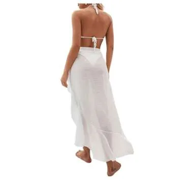 Show more Transform your summer wardrobe with this stunning swimsuit cover-up designed specifically for women who love to blend comfort with style. Made from soft, comfortable, and skin-friendly fabric, this cover-up is perfect for those warm, sunny days whether you're lounging by the pool or strolling along the beach. The unique knot side and ruffle design add a touch of femininity and playfulness, while the mesh sheer material provides just the right amount of coverage.