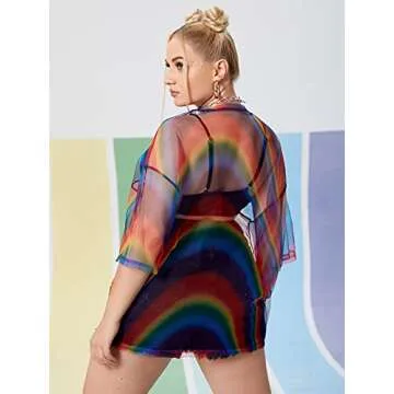 This blouse isn't just about fashion; it's about expressing who you are. Wearing the OYOANGLE Women's Plus Size Blouse will instill you with confidence, ignite your creativity, and allow you to embrace the carefree spirit of each occasion. The sheer mesh and rainbow stripes are not just visually appealing; they resonate with an adventurous and joyous lifestyle. Elevate your wardrobe with a piece that speaks to the vibrant and bold you, setting the tone for a delightful day ahead.