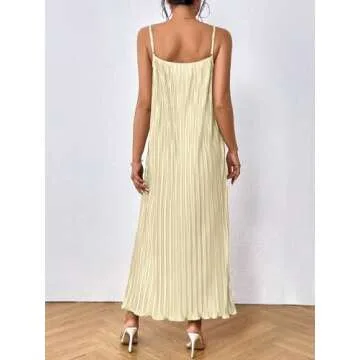 Design: Adjustable strap, spaghetti strap, pleated cami dress, casual style