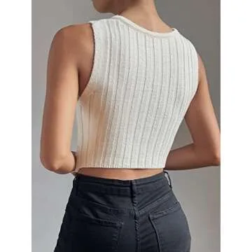 Design: Sleeveless, chain decor, cut out, v neck, knitted, asymmetrical hem, slim fit, cropped length