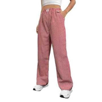 OYOANGLE Women's Y2K High Waist Striped Trousers - Red Medium