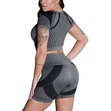 OYS Women's Workout Set 2 piece Seamless High Waisted Active Shorts Running Yoga Gym Outfits Clothes Grey