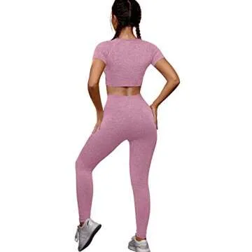 OYS Womens Yoga 2 Pieces Workout Outfits Seamless High Waist Leggings Sports Crop Top Running Clothes Sets