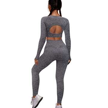 OYS Workout Sets for Women 2 Piece Outfits Seamless High Waist Yoga Leggings Long Sleeve Crop Tops Active Gym Clothes Grey