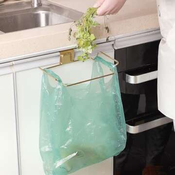 Show moreIntroducing the OYSIR Large Stainless Steel Trash Bag Holder, an elegant and practical addition to your kitchen, pantry, or bathroom. This versatile holder is specifically designed to hang on kitchen doors, cabinet doors, and any other convenient space, ensuring easy access to a trash solution without taking up valuable floor space. Its unique design not only saves space but also helps you maintain a clean and tidy environment. Made from durable stainless steel, the gold finish adds a touch of sophistication to your decor, making it both functional and stylish.