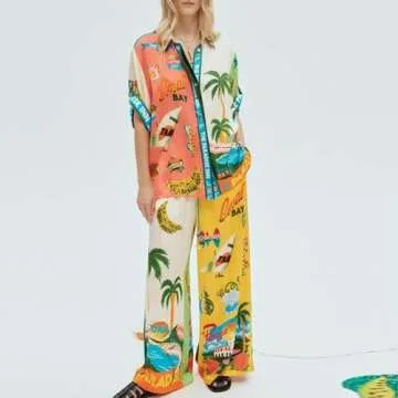 Step into a world of vibrant style and unmatched comfort with the OZSZN Women Y2K 2 Pieces Pants Sets. This trendy boho floral fruit print set includes a short sleeve casual printed t-shirt and matching wide leg pants, ideal for the fashion-forward woman. Crafted from a blend of 95% polyester and 5% spandex, this outfit is not only skin-friendly but also boasts a soft touch, lightweight, and durable design, making it perfect...
