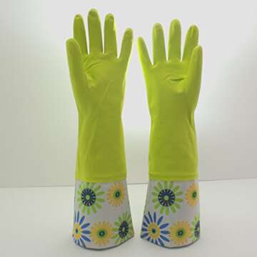 Show moreIntroducing our premium-quality cleaning gloves that redefine your household chores experience! Designed to be waterproof and with a long length, these gloves prevent water from seeping in, ensuring your hands remain dry and comfortable throughout all cleaning tasks. Crafted to perfection, these gloves prioritize your comfort with their non-slip and durable construction, making them a reliable choice for washing dishes, cleaning bathrooms, and tackling general household cleaning duties.