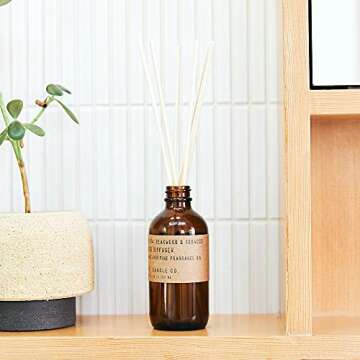 P.F. Candle Co. Teakwood & Tobacco Reed Diffuser - Classic Scent in Amber Glass
