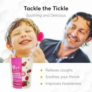 Show more Discover the delightful world of our strawberry flavored Manuka honey lollipops, designed to offer a fun and soothing relief for sore throats, coughs, and hoarseness. Perfect for all ages over 2 years old, these individually-wrapped lollipops are a must-have addition to any parent's toolkit, giving you a tasty solution when your little ones need comfort. What sets these lollipops apart is their use of certified Manuka honey (MGO 300+), known for its exceptional wellness benefits and immune support.