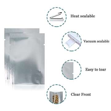 Show moreIntroducing the PABCK 500 Pack 2x2.8 inch Clear Front Mylar Heat Seal Pouch, your ultimate solution for effective food storage and preservation! Designed to cater to the demanding needs of both home cooks and culinary professionals, these versatile pouches feature a user-friendly vacuum-sealable design that maintains freshness while preventing spoilage. Crafted from durable materials, these heat sealable pouches ensure optimal storage for various items, from coffee and candy to baking goods and snacks, making them a staple in any kitchen. The included tear notch allows for effortless opening, providing convenience whether you’re whipping up a treat or enjoying a leisurely snack.