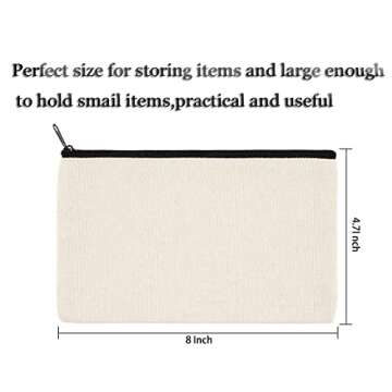 Show moreUnleash your creativity with the Pabues 24 Pack Blank DIY Craft Bags, an excellent choice for anyone who loves to craft and customize. Each beige canvas bag measures 8 inches x 4.7 inches, making them the perfect size for a variety of uses. Made from high-quality canvas and equipped with a sturdy metal zipper, these bags ensure both durability and ease of use. Whether you’re looking to organize your art supplies, store cosmetics, or create personalized gifts, these versatile bags are ideal for everyday use.