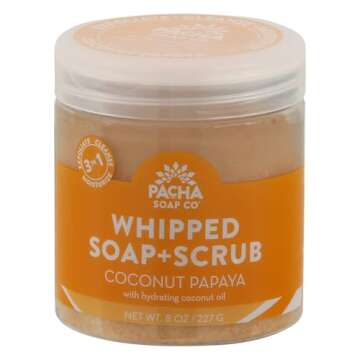 Pacha Coconut Papaya Whipped Soap & Scrub, Luxurious Body Wash and Scrub for a Nourishing & Relaxing Head to Toe Cleanse, 8 oz