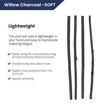 Show moreExperience the artistry that Pacific Arc's Large Willow Charcoal Stick set provides, perfect for artists of all levels. Crafted from premium willow sticks that undergo a meticulous controlled burning process, these sticks are hand-selected for their superior quality. Each package includes four sticks of soft grade willow charcoal, designed to help you effortlessly create stunning sketches and fine art. Its velvety smooth texture allows for grit-free application, ensuring your drawings maintain a beautiful finish.