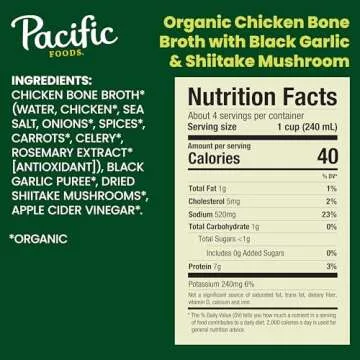 Pacific Foods Organic Chicken Bone Broth With Black Garlic and Shiitake Mushroom, 32 oz Carton