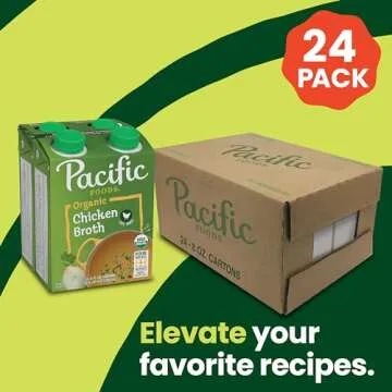 Show moreIntroducing Pacific Foods Organic Free Range Chicken Broth, a wholesome choice for health enthusiasts and culinary adventurers alike. Each carton contains 8 oz of rich, savory broth crafted from slow-simmered organic free range chicken, perfectly balanced with sea salt and an exquisite blend of seasonings. This broth is not just flavorful; it’s also a delightful way to enhance your daily wellness routine. Whether you're sipping it warm as a nourishing beverage or incorporating it into your favorite recipes, this broth stands out not only for its taste but for its commitment to quality and health-conscious ingredients.