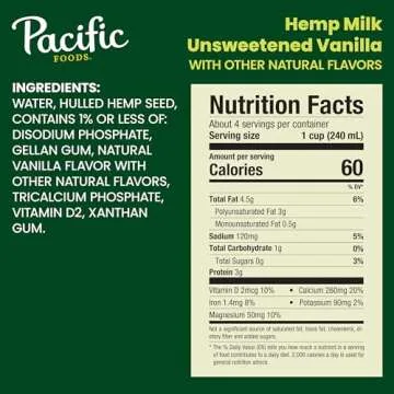 Pacific Foods Unsweetened Vanilla Hemp Milk, Plant Based Milk, 32 oz Carton