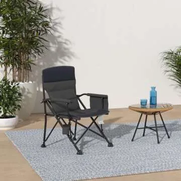 Pacific Pass Heavy Duty Padded Chair w/ Built-In Storage and Cup Holder, Includes Bag - Navy/Gray