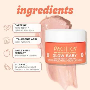 Pacifica Eye Cream for Women - Glow Baby Brightening Eye Cream Eye Cream - Dark Circles Caffeine Under Eye Treatment w/ Vitamin C, Caffeine, Hyaluronic Acid Vegan Cruelty-Free Dermatologist Tested