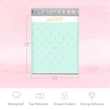 Pack It Chic - 10X13 (100 Pack) Mint Gold Triangles Poly Mailer Envelope Plastic Custom Mailing & Shipping Bags - Self Seal