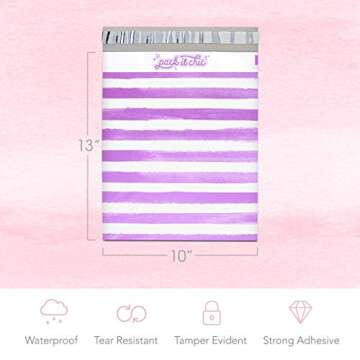 Pack It Chic - 10X13 (100 Pack) Purple Watercolor Stripes Poly Mailer Envelope Plastic Custom Mailing & Shipping Bags - Self Seal