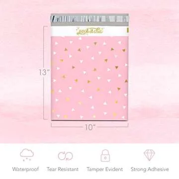 Pack It Chic - 12” X 15.5” (100 Pack) Pink Gold Triangle Confetti Poly Mailer Envelope Plastic Custom Mailing & Shipping Bags - Self Seal