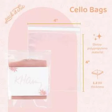 Pack It Chic - 4” X 4” (1000 Pack) Clear Resealable Cello Poly Bags for Jewelry, Cookies, Party Favors - Self Seal