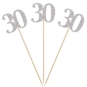 Pack of 10 Silver Glitter 30th Birthday Centerpiece Sticks Number 30 Table Topper Age Letter Decorations