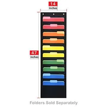 Pack of 2 - Ten Pocket Compact Storage Pocket Chart, Hanging Wall File Organizer by Essex Wares - Organize Your Assignments, Files, Scrapbook Papers & More (Black) (10 Pocket)