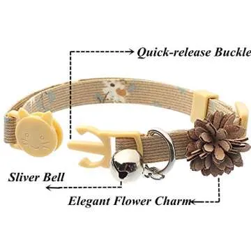Pack of 3 Cat Flower Collar - Breakaway Small Dog Collars with Bell