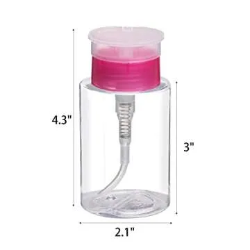 Show moreIf you’re looking for the perfect solution to both transport and dispense your favorite liquids with ease, look no further than our innovative pack of 3 Nail Polish Remover Pump Dispenser bottles. Designed thoughtfully with a touch of style, these dispensers come in a vibrant hot pink top cap that makes them not just functional, but also aesthetically pleasing. Made from high-quality plastic, they ensure durability and longevity while safeguarding the integrity of your liquids.