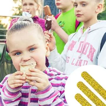 PACKIN WAY 60 Pieces Reusable Glitter Acrylic Popsicle Sticks Multicolored Ice Cream Pop Candy Cake Sticks for Ice Cream, Popsicle, Kids Projects (Gold)