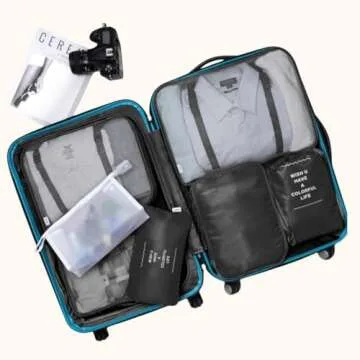 Packing Cubes 7 Pcs Travel Luggage Packing Organizers Set with Toiletry Bag (Black)