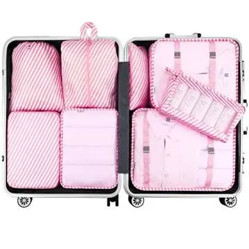 Packing Cubes,Mossio 8 Set Portable Ultralight Travel Gear for Women & Men Pink Striped