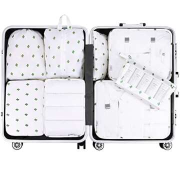 Packing Organizer Bags,Mossio 8 Set Travel Cubes Foldable Luggage Storage Bag White Cactus