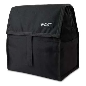 PackIt Freezable Lunch Bag, Black, Built with EcoFreeze Technology, Foldable, Reusable, Zip and Fold Closure with Buckle Handle, Perfect for School and Office Lunches