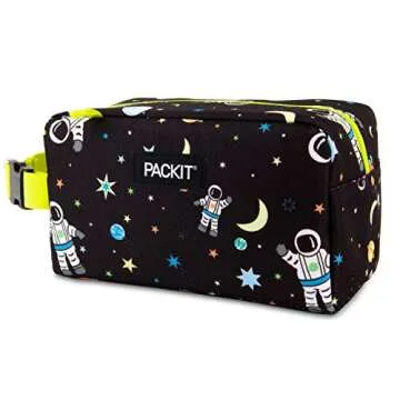 PackIt Freezable Snack Box, Spaceman, Built with EcoFreeze Technology, Collapsible, Reusable, Zip Closure with Buckle Handle, Great for All Ages and Fresh Snacks on the go