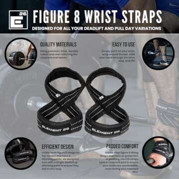 Padded Figure 8 Wrist Straps - Weightlifting Straps - Functional Fitness, Weight Lifting, Deadlifts, Farmer Walks (Medium, Black)