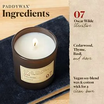 Paddywax Candles GL07Z Library Collection Oscar Wilde Scented Soy Wax Candle, 6.5-Ounce, Cedarwood, Thyme & Basil