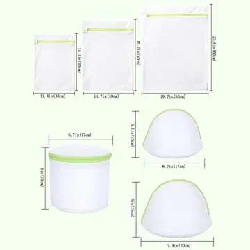 Pagetoc Mesh Laundry Bag Set of 6, White Delicate Durable Polyester Wash Bags with Zipper for Laundry Blouse Hosiery Stocking Underwear Bra and Lingerie