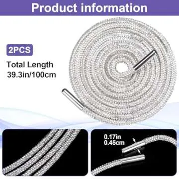 Show more Introducing the PAGOW 1Pairs Rhinestone Glitter Rope, a dazzling addition to your footwear and fashion accessories! These crystal bling bling shiny round shoe laces are not just ordinary laces; they are a statement piece that elevates any outfit to new heights. Crafted with high-quality glass rhinestones meticulously attached to a sturdy cotton cord, each lace measures an impressive 47 inches (120 cm) in length. The stainless steel heads add an extra touch of durability and elegance, ensuring your laces not only shine but also stand the test of time.